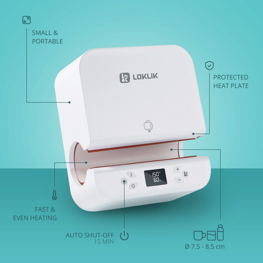 Pikendatud ja suurem kuumutusplaat muudab selle pressi sobivaks mitmesuguste esemete, näiteks kruuside, klaaside, trummelklaaside ja veepudelite jaoks. See sobib silindriliste keraamiliste, roostevabast terasest või klaasist esemete jaoks, mille läbimõõt on 7,5 kuni 8,5 cm ning max pikkus 21 cm.